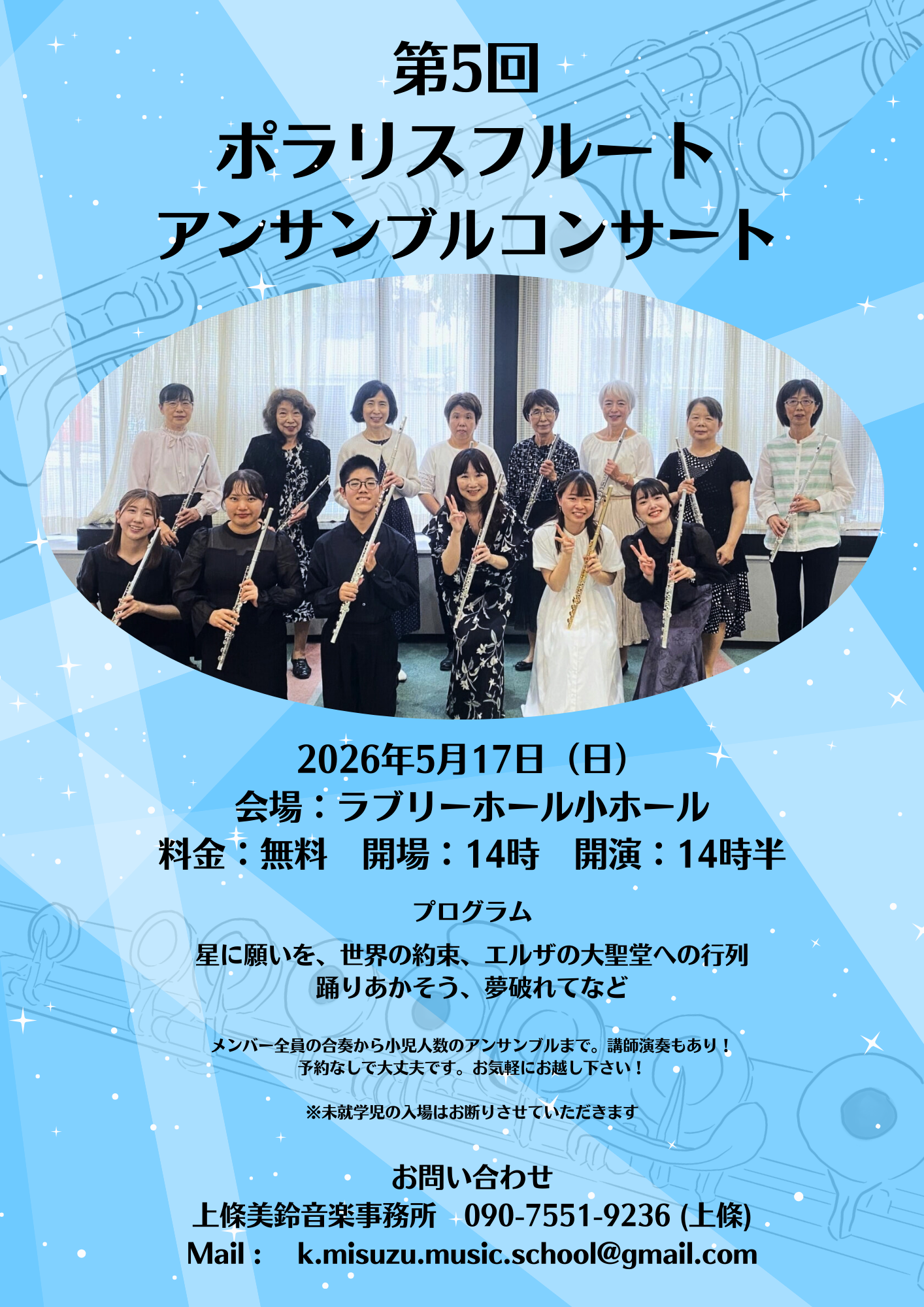 第5回ポラリスフルートアンサンブルコンサートを5月17日(日)に行います!